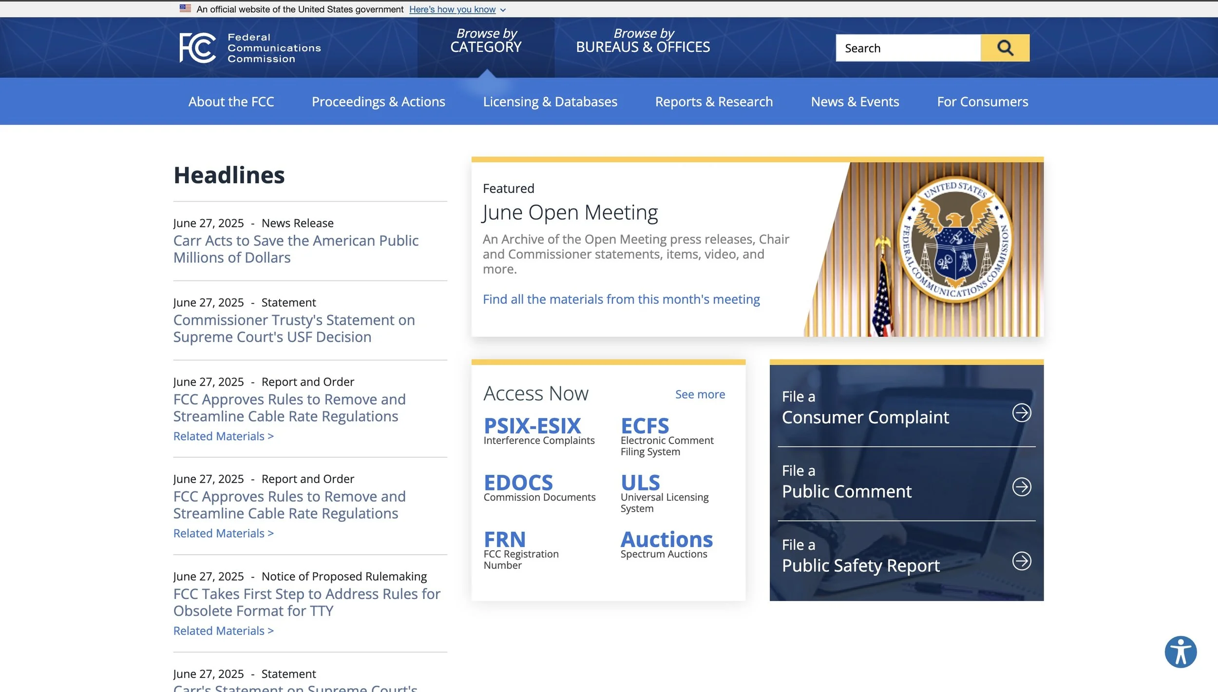 I tasked the users with filing a consumer complaint, file a public comment, and find the television station search.