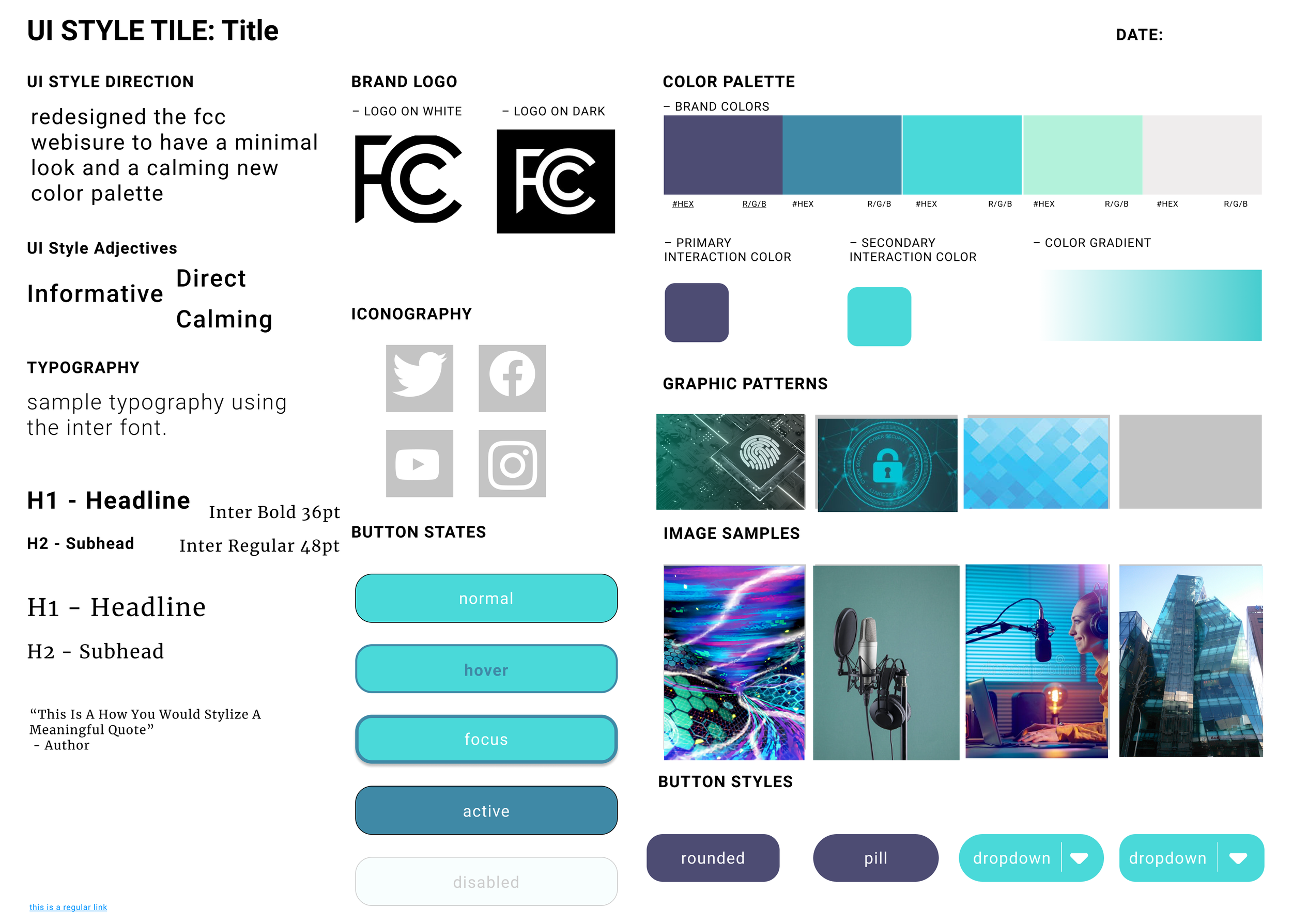 For the redesign of the FCC website; I decided to go with a minimal and clean aesthetic.